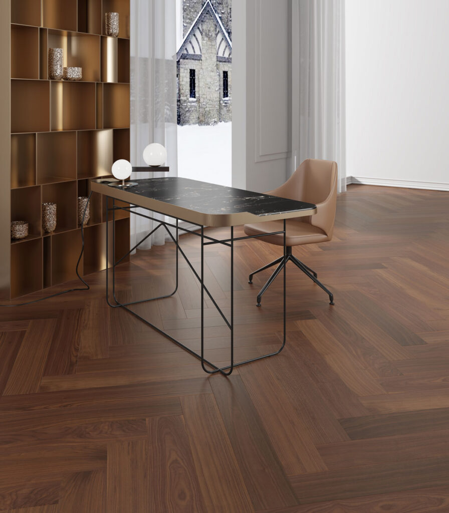 Make a statement in a room with the traditional and luxurious look of the herringbone pattern.
